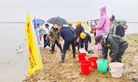 4月21日,江西鄱阳湖康山蓄滞洪区安全建设工程1标项目部联合项目参建单位,在鄱阳湖畔开展增殖放流保护生态环境公益活动。 项目部已连续三年在鄱阳湖开展增殖放流活动,累计投放鱼苗超32万尾。活动现场,一尾尾鱼苗顺着放流槽和水盆跃入湖中,平静的湖面绽放生命的涟漪。此次放流的鱼苗主要以鲢鱼、鲫鱼、草鱼、鲤鱼等本土滤食性、草食性鱼类为主,鱼苗共12万尾,严格按照水生生物增殖放流技术规范,对放流鱼苗的品种、规格、数量进行严格核验,确保鱼苗品质优良、适应水域生存环境。 此次活动通过“放鱼养水”的形式,养护水生生物资源、保护生物多样性、改善水域生态环境,以实际行动为鄱阳湖注入生态活力,彰显央企责任担当。目前,该工程正处于收官冲刺阶段,项目部将以行动诠释责任,确保工程高质量建成,为绘就鄱阳湖“ 水清鱼跃、人水和谐”的生态画卷注入电建力量。 | ||||