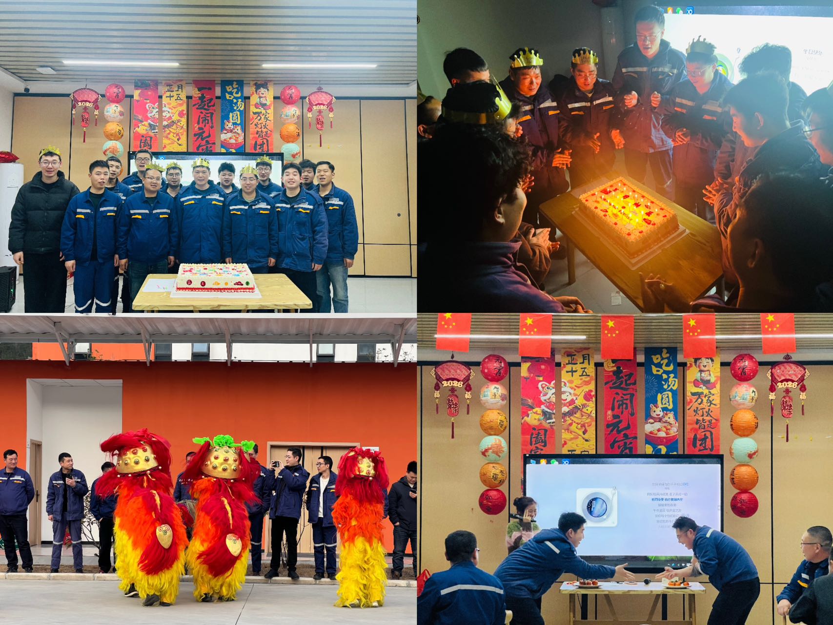灯火映佳节,温情暖人心。恰逢元宵佳节,水电十四局陕西佛坪抽蓄项目部精心组织舞龙狮、猜灯谜、品元宵等系列民俗活动,同步开展一季度职工集体生日会,20名一季度寿星与全体职工欢聚一堂,在喜庆氛围中为新年收尾,收心聚力启新程,以饱满状态投入新一年施工生产工作。 为让职工感受浓郁的传统节日氛围,项目部邀请佛坪县非遗文化传承人到场带来舞龙狮表演。红黄龙狮伴着铿锵鼓点翻腾跳跃、灵动舞动,非遗传承人的精湛技艺赢得现场阵阵喝彩,既让大家领略到非遗文化的独特魅力,更点燃了喜庆祥和的节日气氛,展现出项目建设者昂扬向上的精神风貌。猜灯谜区域同样热闹,民俗常识、趣味谜题等各式灯谜挂满现场,职工们驻足思索、相互探讨,在益智互动中尽享节日乐趣。 热闹的民俗活动后,温馨的集体生日会接续开启。定制蛋糕缓缓推上,烛光映亮寿星笑颜,全体职工齐唱生日歌送上真挚祝福,项目部为20位寿星准备了专属礼物,大家共同切蛋糕、品元宵,在欢声笑语中感受项目大家庭的温暖。 一碗碗香甜元宵暖胃暖心,一次次互动交流拉近距离。此次活动将传统民俗与职工关怀深度融合,不仅缓解了职工的工作疲惫,更增强了团队的凝聚力与归属感。新的一年,项目部全体职工将带着这份温情与干劲,凝心聚力、实干争先,以昂扬姿态全力推进项目建设,为佛坪抽蓄电站工程高质量发展保驾护航。 | ||||