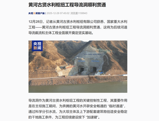 12月28日,记者从黄河古贤水利枢纽有限公司获悉,国家重大水利工程——黄河古贤水利枢纽工程导流洞顺利贯通,这将为后续河道导流截流和主体工程全面展开奠定坚实基础。 导流洞作为黄河古贤水利枢纽工程的关键控制性工程,其重要作用是在主坝施工期间,为奔腾的黄河水开辟安全畅通的 “临时通道”,通过科学分引水流,为大坝主体及上下游配套建筑物创造安全稳定的干地施工条件,为工程后续建设按下 “加速键”。 据了解,黄河古贤水利枢纽工程是继2001年小浪底水利枢纽建成以来,黄河干流上又一项重大骨干水利枢纽工程,在黄河水沙调控体系中具有承上启下的战略地位,也是新时代保护治理黄河、保障黄河长久安澜的标志性工程,建成后将承担防洪减淤、水资源调蓄、供水、灌溉、发电等重要功能,并为下游补水和增加河道外用水创造条件,对健全黄河水沙调控体系、保障黄河长久安澜具有重要意义。