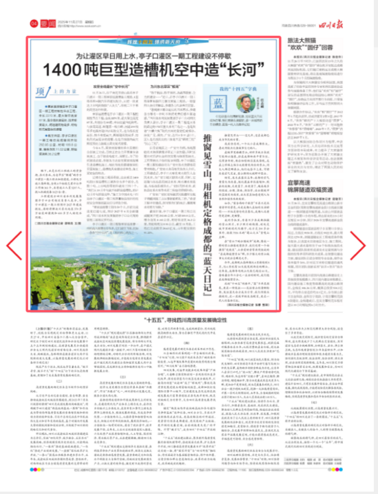 11月27日,《四川日报》要闻04版对水电十四局承建的亭子口灌区一期工程进行了报道,内容如下:
