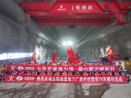 重庆市云阳抽水蓄能电站是国家“十四五”重点开工和全市“十四五”规划重点实施项目,总装机容量120万千瓦,承担着重庆电网调峰填谷、储能和紧急事故备用等任务。 自2023年3月项目开工以来,水电十四局云阳抽蓄项目部以“七彩云蓄,凝心聚力”党建品牌为核心引领,紧扣红色党建、绿色发展、橙色文化、紫色英才、蓝色创新、青色廉洁、金色业绩七大维度,将党建工作与项目建设深度融合、同频共振,攻克复杂地质与施工难题,跑出项目建设“加速度”,为打造抽水蓄能电站“双示范、一标杆”奠定坚实基础。 厂房开挖完成。徐慎摄 坚持红色党建引领,筑牢发展根魂 项目部始终坚持把政治建设摆在首位,严格落实“第一议题”制度,打造学习型党支部,通过微党课、工地谈心等形式推动主题教育进工地、进一线。 创新党建融入模式,成立党员先锋队、青年突击队,设立党员先锋岗、责任区,让党员在施工攻坚中当先锋、作表率,将党组织的战斗堡垒作用和党员的先锋模范作用体现在项目建设各环节。 深化企地共建,开展敬老爱幼、购买滞销红橙、参与抗洪抢险等系列活动,落实农民工工资“零拖欠”底线,连续2年获评“先进基层党支部”、公司级以上履约样板项目,履约实力持续领跑。 主题党日活动。徐慎摄 聚焦绿色发展,守护生态底色 项目部推进绿色施工,成立绿色施工领导小组并编制专项方案,打造绿色施工示范工程。在资源利用上,严格把控材料使用,合理规划渣料用途,实现资源内部循环利用最大化;在设备管理上,建立高耗能设备常态管理机制,从源头杜绝高能耗设备进场,安装环境监测设备实时监测扬尘、噪音。 落实污染防治措施,在五号施工支洞边坡植草采用TBS植草技术防止水土流失,配备一体化污水处理系统实现施工污水回用,生产生活区垃圾集中收集处理,将施工对环境的影响降至最低,实现工程建设与生态保护协同发展。 增殖放流活动。徐慎摄 弘扬橙色文化,凝聚团队合力 项目部以企业文化建设为抓手,将企业精神、核心价值观融入项目建设全过程,讲好水电建设故事,树立先进典型。 建强宣传队伍,打造多元宣传矩阵,项目建设成果获主流媒体聚焦报道,彰显“地下铁军”品牌形象。丰富精神文明建设形式,开展技能比武、知识竞赛等活动,弘扬劳模精神、劳动精神、工匠精神。发挥群团组织桥梁纽带作用,常态化落实“春送慰问、夏送清凉、金秋助学、冬送温暖”等职工关爱普惠工程,开展集体生日、文体竞赛等活动,建立困难职工帮扶机制,切实增强职工的归属感、幸福感和凝聚力,营造干事创业、团结奋进的浓厚氛围。 构建紫色英才,夯实人才支撑 项目部坚持人才强企战略,构建“选拔、使用、培育、管理、退出”全链条人才培养体系,以“师带徒”“传帮带”模式加快青年人才培养,助力“工作新秀”成长为“业务骨干”。 制定专项培训计划,围绕施工技术、安全管理等开展精准培训,强化人员专业能力。拓宽用人视野,注重在生产经营一线、关键岗位发展党员,打造“政治过硬、业务过硬、作风过硬” 的高素质队伍。 此外,完善激励机制,23名职工分别获公司、业主等各级表彰,通过树立先进标杆,激发起全员干事创业热情。 强化蓝色创新,破解施工难题 项目部以技术创新为核心驱动力,聚焦砂泥岩互层的复杂地质难题,党员技术骨干牵头开展技术攻关,成功研发 “锚索快速灌浆料”将支护效率提升30%,总结形成“地下厂房光面爆破技术”“岩壁吊车梁岩台双向控爆技术”等多项核心技术。 大力推广应用电力建设“五新技术”和建筑业10项新技术,创新采用“一钎到底”光面爆破、锚索智能张拉等技术,洞室开挖支护全面采用凿岩台车、湿喷台车等成套机械化设备,实现高边坡无排架施工。 创新管理模式,打造 “1+2”大工区扁平化管理架构,决策链条缩短40%,实现快速响应、高效施工。推进数字化转型,搭建智慧安检系统、人员定位系统,打造智能化钢筋加工厂及智慧服务中心,实现施工全过程可视化、自动化、信息化,降本增效成效显著。 主变室边墙深孔预裂爆破效果。徐慎摄 注重青色廉洁,涵养清风正气 项目部构建“三不”一体推进廉洁防控体系,打造“1+2+3”项目廉洁品牌,充分利用“三会一课”和重大节假日开展廉洁文化教育,通过书记讲廉政党课、观看警示片、签订廉洁承诺书等形式,筑牢党员干部廉洁自律防线。 强化廉洁文化阵地建设,在办公区、生活区展示廉洁小故事、警句格言,摆放廉洁警示桌牌,让廉洁文化入脑入心。 整合监督资源,搭建“大监督”体系,将廉洁监督融入施工管理各环节,联合建行云阳支行党总支开展红色教育活动,传承红色精神,让全体党员厚植新风正气,营造风清气正的项目建设环境。 土木工程公司党委委员、安全总监主题党课。徐慎摄 彰显金色业绩,铸就行业标杆 在党建品牌的引领下,项目部攻克“无筹建期、无成熟经验、无宽松工期”三大难题,创造了项目建设五项第一。 2023年1月,5号施工支洞如期顺利进洞,实现了“跑步进场,先声夺人”的良好开端,该隧洞为本电站第一个首开隧洞,也是直通厂房的关键线路,意义深远。 2024年3月,厂房Ⅰ层开挖顺利完工,比预期提前25天完成目标任务,年底斩获主厂房顶拱光面爆破开挖、主变洞边墙深孔预裂爆破开挖、岩壁吊车梁光面爆破开挖三项