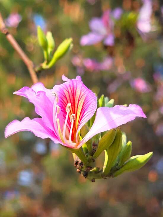 刚挥别昆明漫天纷飞的樱花,携着一缕未散的春思与轻愁,我向南而行,踏入广东韶关。本以为樱花散尽,春便远了,却惊觉岭南的春色,早已以另一番温柔与热烈,静静等候着每一个远道而来的人。 暖暖的风,丝丝的雨,便是岭南春天的信使,悄无声息,便捎来了一年一度的花事。这里的春从不会沉默隐匿,它就藏在路边一树又一树的繁花间,只一抬眼,便是扑面而来、铺天盖地的温柔和热烈。 你看那粉艳的羊蹄甲,像被春日的霞光轻轻染透,从枝丫间倾泻而下,层层叠叠,如云似霞。风一吹,细碎的花瓣簌簌飘落,铺成一条淡粉的绒毯,踩上去绵软温柔,像跌进一场不愿醒来的梦。 它不似别处的春花那般娇怯,带着岭南独有的热情,把一整个春天的明媚,都攒在枝头。路过的人,总会忍不住放慢脚步,想把这满树温柔,悄悄收进眼底。 间或有几株白色的羊蹄甲,像遗落在粉云里的雪,清浅、干净,带着几分不染尘俗的诗意。它们不与繁花争艳,只静静立在一旁,用素净的白,衬得那片粉更加温柔。白得纯粹,粉得柔美,两种颜色在春风里交织,像一幅晕染开的水墨,又像一首轻吟的粤曲,把岭南的春,唱得婉转又多情。 松树的苍翠,是这画卷里最沉稳的底色,衬得粉白的花朵愈发鲜活。路边新草初绿,带着泥土的清润,混着羊蹄甲淡淡的幽香,漫进鼻息,是春天最本真的味道。 没有北方春寒料峭的凛冽,广东的春是暖的,是软的。羊蹄甲开得漫山遍野时,连风,都变得格外温柔。 若说羊蹄甲是岭南春天的温柔低语,那黄花风铃木,便是春日最热烈的告白。 它先抖落一身旧叶,让遒劲的枝丫露出筋骨,再把满树金黄的花铃,一串串、一簇簇缀满枝头。没有半片绿叶遮掩,那明亮的黄撞入眼帘,像把整个南国的阳光揉碎,熔成了这一树璀璨。 风过时,花铃在蓝天下轻轻摇晃,簌簌作响,仿佛是春天摇响的金铃,把暖意播撒在每一寸空气里。偶有花瓣挣脱枝丫,打着旋儿飘落,铺成一地碎金。踩上去,声响清脆,像踩着一整个晴朗的春日。 它不似粉花那般缱绻,却带着岭南人骨子里的爽利与明亮,开得坦荡又张扬,把春天的热烈,写得淋漓尽致。 这,便是属于广东的春。不刻意张扬,却足够动人。它藏在每一朵花的褶皱里,藏在每一缕拂过花枝的清风里,藏在每个岭南人抬头便能遇见的温柔里。 | ||||