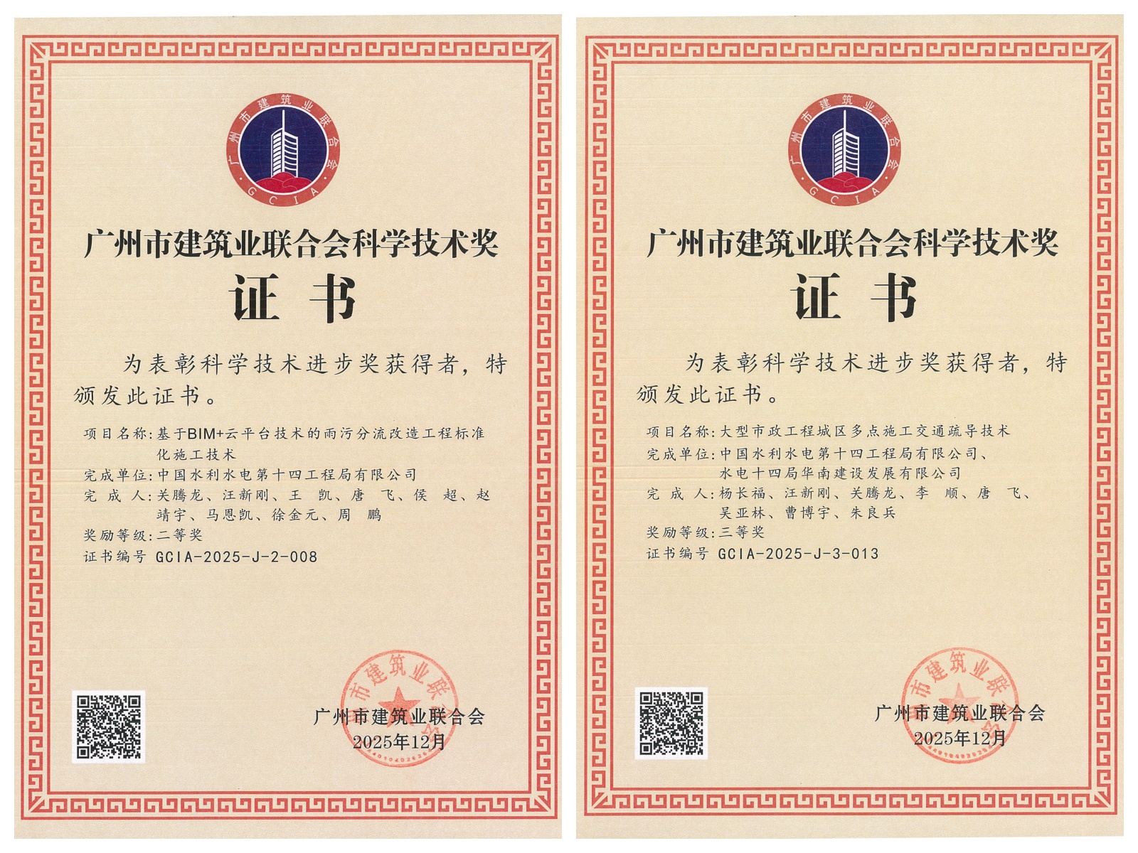 1月10日,广州市建筑业联合会发文公布了2025年度广州市建筑业联合会科学技术奖获奖名单,公司研发的《基于BIM+云平台技术的雨污分流改造工程标准化施工技术》获二等奖,《大型市政工程城区多点施工交通疏导技术》获三等奖。 《基于BIM+云平台技术的雨污分流改造工程标准化施工技术》建立了BIM+云平台相结合的工程标准化施工技术,实现工程施工可视化场地布置、交底及工程量自动计算等,提高现场标准化施工水平。依据BIM三维动态模型,实现了场内材料周转、材料供应及施工进度动态管控,施工资源配置计划合理有效。通过采用便携式材料转运装置、管道移运工具及防滚装置等,降低对周边环境的影响,实现施工现场材料管理标准化。 《大型市政工程城区多点施工交通疏导技术》针对大型市政工程城区多点施工交通疏导技术进行了研究,通过对项目整体实施时序进行优化,降低了施工对交通的影响;采用物联网等信息化技术,提高了绿色交通导行应急响应速度和交通堵塞的处置速度,形成了相应的施工新技术。 两项关键技术成功在花都建设路渠箱、狮岭西群河项目、花都三同五化项目应用,经济与社会效益显著,对类似工程施工具有一定的指导和借鉴作用。 | ||||