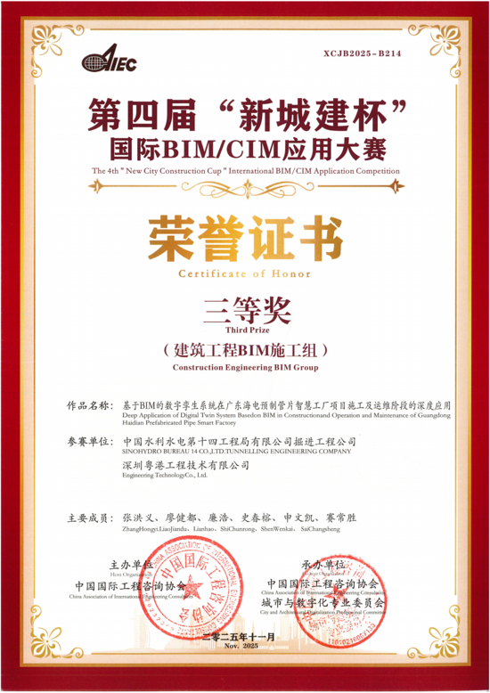 在数字化革命浪潮席卷下,无人能置身事外、轻言退避。对掘进工程公司而言,数字化转型是一条方向笃定却布满坎坷曲折的进阶之路。回望“十四五”,掘进工程公司坚定推进数字化建设,充分依托TBM/盾构、混凝土预制拌合等业务,深挖数字化赋能潜力,在探索中突破、在坚守中成长,实现了数字化建设量与质的双重跃迁,走出了一条从“0”到“1”的蝶变、蜕变与嬗变之路。 蝶变,静待花开 从2023年9月发展新质生产力要求首次提出,到掘进工程公司成立智慧建管中心,获颁第1个国家计算机软件著作权登记证书,整整两年,每一步都浸透着坚守与艰辛,每一次突破都考验着全员的恒心与抗挫力。 数字化技术推广应用的本质是现实生产技术的一种“镜像”表达,通过抓取大量的数据进行反复分析运算和规律性比对后的一比一复刻,最终完成虚实转换间的互嵌共生。归根结底是新需求激烈碰撞旧传统、新认知反复较量老观念后的更优解。 “对待新事物,从抵触到接受再到支持需要一定的时间催化和大量的精力投入,而这个过程是孤独的、漫长的,也是最煎熬的。”作为掘进工程公司智慧建管中心的负责人,廉浩深有体会。 如何让坚守传统技艺、笃信经验积累、善于实操解决问题的一线施工人员理解并接受数字化?这让团队中的张友和高芳健犯了难。没有捷径可走,他们只能一趟一趟地蹲现场、一组一组地跑数据、一遍一遍地核运算、一次一次优算法,一点一点用行动传递着数字化变革的力量。渐渐地,现场的同事们放下疑虑、转变配合,发回数据的可靠性、精准度大幅提升,智能系统的开发也驶入“快车道”。 2025年,掘进工程公司数字化技术创新完成破茧蝶变,迎来重要突破。基于BIM的数字孪生系统在粤西管片厂项目施工及运维阶段深度应用,斩获第四届“新城建杯”国际BIM/CIM应用大赛三等奖,混凝土智能管控、智慧盾构管理、智慧砂石管理等5项原创成果,先后通过国家计算机软件著作权登记,数字化研发实力得到行业认可。