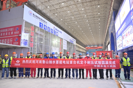 12月1日,河南鲁山抽水蓄能电站首台1号机组定子线棒耐压试验一次性通过,为首台机组投产发电奠定了坚实基础。 该电站地下厂房装设4台单机容量为325兆瓦的可逆式水轮发电机组,总装机容量为1300兆瓦。本次试验对象——定子绕组为三相4支路“Y”形连接对称双层叠绕组结构,共计432根线棒,布置于216个线槽内。定子线棒采用空气冷却的冷却方式,嵌入前在两侧及底面包一层刷导电腻子的槽衬以降低槽电位。槽内采用槽底垫条(导电玻璃布)、层间垫条和楔下垫条,并利用波纹板和槽楔进行固定。线棒端部采用端箍、层间端箍、斜边垫块及槽口垫块并利用绑扎绑绳进行端部固定。定子线棒并头采用银铜焊接方式,并利用绝缘盒加灌注胶的方式对并头进行绝缘。 作为发电机组的“心脏”,定子绕组的绝缘性能直接决定机组在极端工况下的运行稳定性。此次耐压试验采用国际先进的交流耐压技术,对线棒进行了严苛的电气性能测试。结果表明,其绝缘强度与耐压能力全面优于设计标准,验证了设备在长期高负荷运行中的可靠性。此次试验成功不仅消除了设备隐患,也为首台机组后续调试与并网发电提供了坚实保障,成为电站按期投产的关键一环。 | ||||