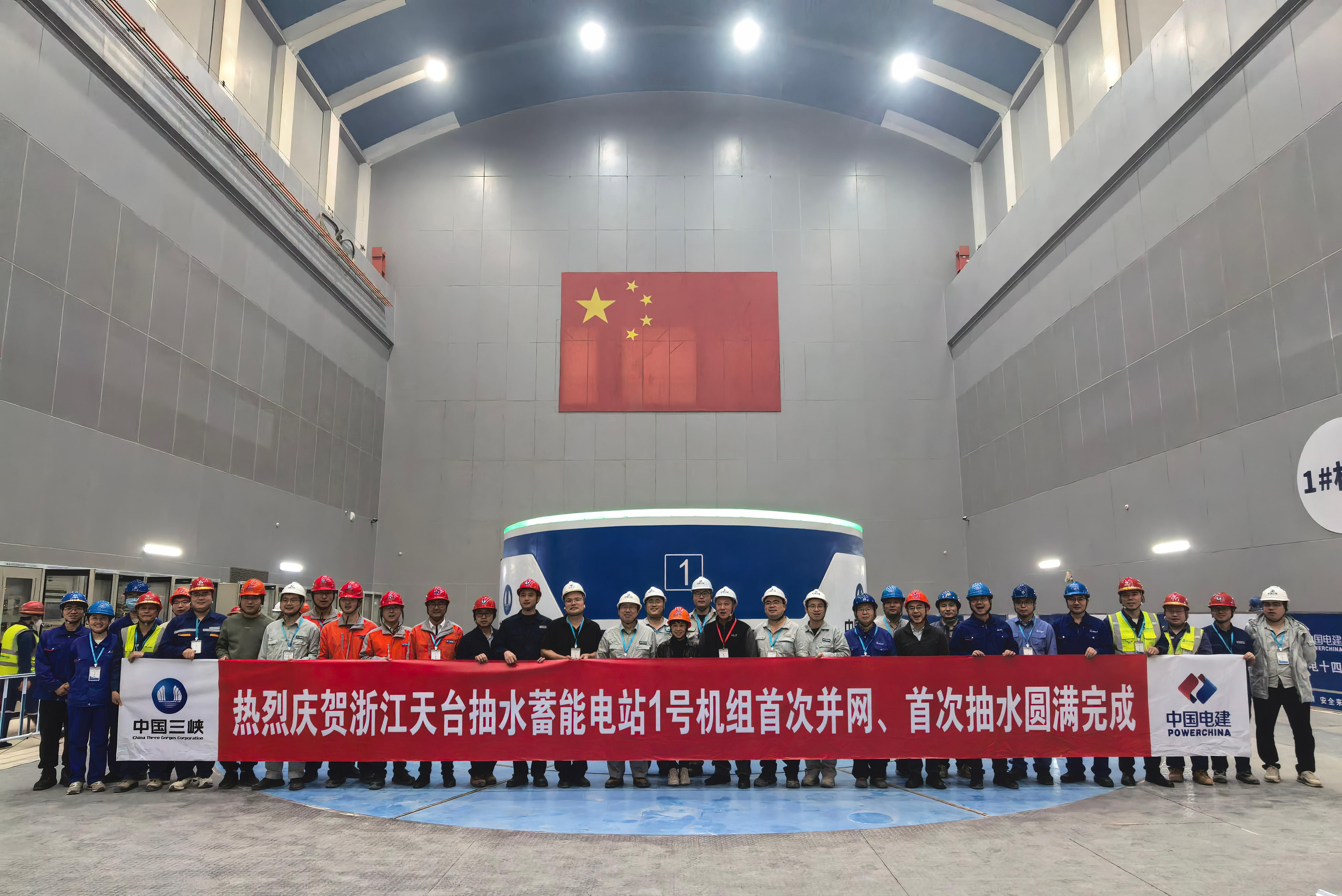 浙江天台抽水蓄能电站捷报频传:12月10日18时06分,首台机组首次抽水调相工况并网一次成功;12月11日04时06分首次抽水调相成功;12月11日08时53分首次发电并网成功,标志着天台抽蓄电站首台机组在试验条件下具备发电及抽水运行能力。 以上重要节点是继12月8日完成500千伏倒送电试验后该机组调试取得的重大阶段性成果。此前,机组已完成水轮机工况并网前试验等系列准备工作。后续现场还将开展机组甩负荷试验、水泵断电试验、各工况轴承热稳定试验、工况转换等试验。 浙江天台抽水蓄能电站首台机组成功并网,是电站由安装调试阶段正式转向投产运行的关键里程碑。这一“超级充电宝”正式投入运营后,将大幅增强华东电网的灵活调节能力,为区域电网安全稳定运行提供坚实保障,有力助推我国能源结构优化与“双碳”目标实现。 | ||||