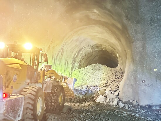 3月18日,福建木兰抽蓄项目部2#尾水隧洞上游贯通。 2#尾水隧洞上游与尾水岔管相连接,上游全长705.719米,断面采用马蹄型,Ⅱ、Ⅲ类开挖断面尺寸为5×8米(宽×高),Ⅳ类开挖断面尺寸为5.4×8.25米(宽×高),分为上下台阶进行开挖。施工过程中,项目部科学组织工序衔接,严格执行“短进尺、弱爆破、强支护、勤量测”原则,确保围岩稳定与施工安全。采取超前钻孔泄压、基岩面洒水释放应力、围岩素喷封闭等措施,逐步攻克施工中面临的各种难题。 2#尾水隧洞上游贯通为后续尾水调压井及隧洞下游施工按下了加速键。项目部将继续加强工序衔接,优化资源配置,精心组织施工,严格控制地下洞室开挖支护施工质量,做好安全防范措施,加大施工现场日常巡查力度,做到安全零事故,确保项目工程建设各项工作的顺利推进。 | ||||