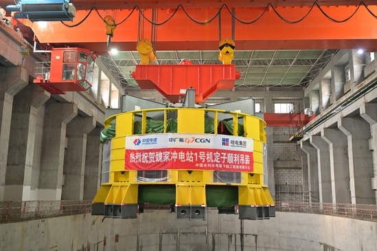 3月31日17时46分,湖北魏家冲抽蓄电站首台(1号)机组核心部件定子机座顺利吊装完成,为电站后续转子安装、机组总装等工序提供有力保障。 本次吊装的定子机座为圆形结构,由定子机座、铁心、绕组等精密组件构成,外径达8200毫米,总高度约3075毫米,自身总重201.7吨,属于电站核心重型部件。由于吊装总重量(含吊具)超过242吨,作业难度较大,项目部经过科学研判、精心部署,决定采用厂房2×200吨桥机双小车200吨主钩双钩并车抬吊的方式进行作业。吊装过程中,现场指挥、起重等工作人员各司其职、密切配合,严格把控吊装精度与安全,确保定子机座平稳起落、精准就位,圆满完成吊装任务。 自工作面移交以来,机电安装团队稳步推进工程建设。2025年8月,首台机组座环蜗壳圆满完成吊装,标志着电站首台机组正式进入主机设备全面安装阶段。2025年12月,1号机组发电机层混凝土浇筑完成,全面进入机电设备安装高峰期。 电站建成后,对优化湖北省清洁能源结构、保障电网安全稳定运行、助力实现“双碳”目标具有重要意义。下一步,项目团队将持续严把安全关、质量关,以“知道做到,说到做到,马上就办,办就办好”的工作作风,精益求精推进各项建设任务,全力打造全国中小型抽水蓄能电站标杆工程。 | |||||