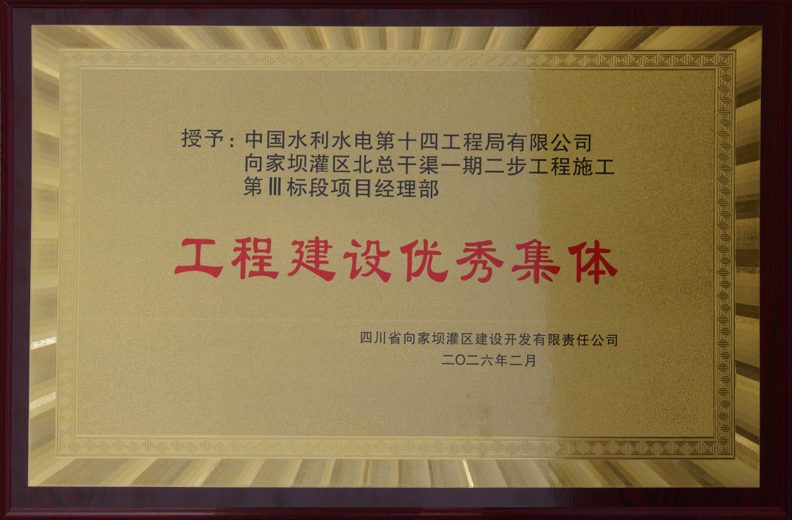 3月5日,在四川省向家坝灌区建设开发有限责任公司召开的年度工作会上,向家坝一期二步Ⅲ标项目部荣获2025年度“工程建设优秀集体”荣誉称号。 2025年以来,向家坝一期二步Ⅲ标项目部坚持党建引领,统筹推进安全、质量、进度等各项工作,在复杂地质条件和长距离施工战线的挑战下,科学组织施工、强化技术攻关,持续推动工程建设提质增效。项目部在隧洞施工、渡槽建设、支渠开挖埋管等关键节点任务中攻坚克难,多个重点施工节点顺利完成,为工程整体推进奠定了坚实基础。项目部始终坚持高标准推进项目管理,严格落实安全生产责任制和质量管理要求,通过开展安全培训、质量管理活动和技术创新实践,不断提升工程建设管理水平,确保项目安全有序推进。 此次荣获“工程建设优秀集体”荣誉,既是对项目部工作的充分肯定,也是对全体建设者砥砺前行、再创佳绩的有力鞭策。下一步,项目部将以此为新的起点,持续强化责任担当,全力推进后续工程建设,为向家坝灌区工程早日建成通水贡献力量。 | ||||
