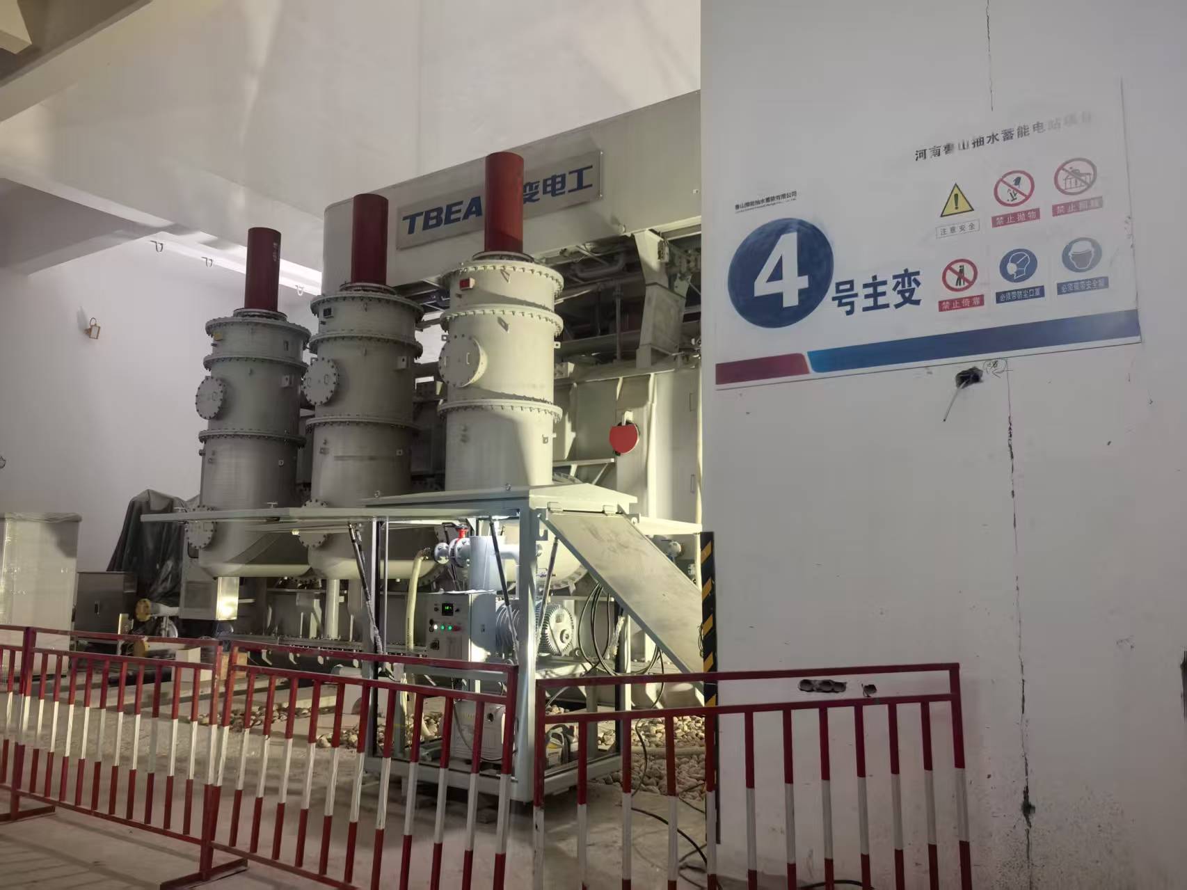 1月16日,河南鲁山抽水蓄能电站4号主变压器顺利完成安装。至此,该电站全部主变压器安装任务圆满结束,标志着500千伏电气设备安装取得阶段性重要进展,为后续倒送电及电站全面投产奠定了坚实基础。 该电站共配置4台容量为400000千伏的三相双绕组油浸水冷电力变压器,变压器油重66吨,总重达327吨。主变压器低压侧与18千伏离相封闭母线连接,高压侧与地下GIS联合单元连接。作为电站电力输送的核心设备,主变压器的安装质量直接关系到电站整体运行稳定性。 自首台主变压器安装启动以来,安装团队发挥公司“抽蓄王牌、安装尖锋”的专业优势,克服工期紧、任务重、作业环境复杂等诸多挑战,严格遵循“精准测量、规范安装、逐项复核、闭环管控”的施工原则,对每道工序、每个部件都进行细致检查和反复核验,有效杜绝了质量隐患和安全风险。 下一步,项目部将以主变压器安装完成作为新起点,加快推进倒送电及首台机组投产发电相关工作,全力推动电站早日实现全面投产。 | ||||