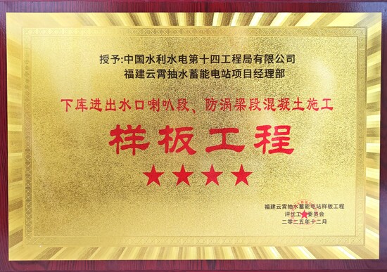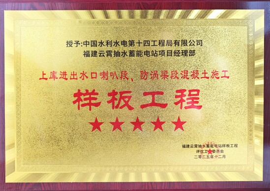近日,云霄抽蓄项目部获得中核国电漳州能源有限公司颁发的两项样板工程称号。 项目部“上库进出水口喇叭段、防涡梁段混凝土施工样板工程”获评五星级样板工程,“下库进出水口喇叭段、防涡梁段混凝土施工样板工程”获评四星级样板工程。 上、下库进出水口喇叭段、防涡梁段混凝土浇筑是抽水蓄能电站的重要工程,核心作用为分流、整流、防涡与减阻,保障双向工况下各流道流量均匀、流态稳定,对混凝土外观质量及内在质量要求较高。项目部提前制定样板工程方案,明确各级施工责任落实到人,确保各工序施工严格按相关规范及样板工程实施方案执行,安排专人全程旁站,对优秀的施工方法进行总结,定期组织经验反馈,不断完善施工工艺,为后续施工提供质量保障依据和经验。最终在项目团队的共同努力下,得到了业主、监理单位的一致好评,成功获评样板工程荣誉称号。 云霄抽蓄项目部始终致力于打造“云霄抽蓄品牌”,以匠心打造精品工程,以样板工程赢得认可,不断夯实公司“地下铁军、水电劲旅、抽蓄王牌”的品牌根基,充分展现公司在抽水蓄能业务领域的突出竞争优势,以优异的成绩获得业主的高度认可。 | ||||