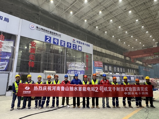 4月3日,河南鲁山抽水蓄能电站2号机组定子线棒耐压试验一次性通过。 该电站地下厂房装设4台单机容量325兆瓦的可逆式水轮发电机组,总装机容量为1300兆瓦。定子绕组采用三相4支路“Y”形连接对称双层叠绕组结构,共216槽、432根线棒。线棒采用空气冷却的冷却方式,嵌入前在两侧及底面包一层刷导电腻子的槽衬以降低槽电位。槽内采用槽底垫条(导电玻璃布)、层间垫条和楔下垫条,并利用波纹板和槽楔进行固定。线棒端部采用端箍、层间端箍、斜边垫块及槽口垫块并利用绑扎绑绳进行端部固定。定子线棒并头采用银铜焊接方式,并利用绝缘盒加灌注胶的方式对并头进行绝缘处理。 定子绕组作为发电机组的“心脏”,其绝缘性能直接决定机组在极端工况下的运行稳定性。此次耐压试验对线棒进行了严苛的电气性能测试,结果显示绝缘强度与耐压能力全面超越设计标准,为2号机组后续总装与并网发电提供了坚实保障,成为电站按期投产的“定心丸”。 | ||||